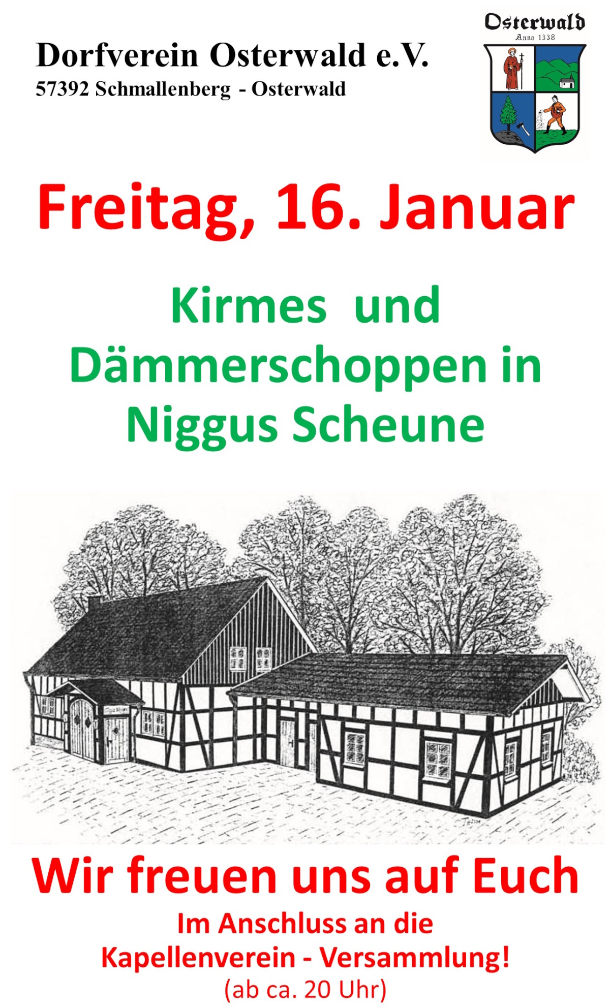 Nach dem Patronatsamt findet die Generalversammlung des Kapellenverein Osterwald e.V.